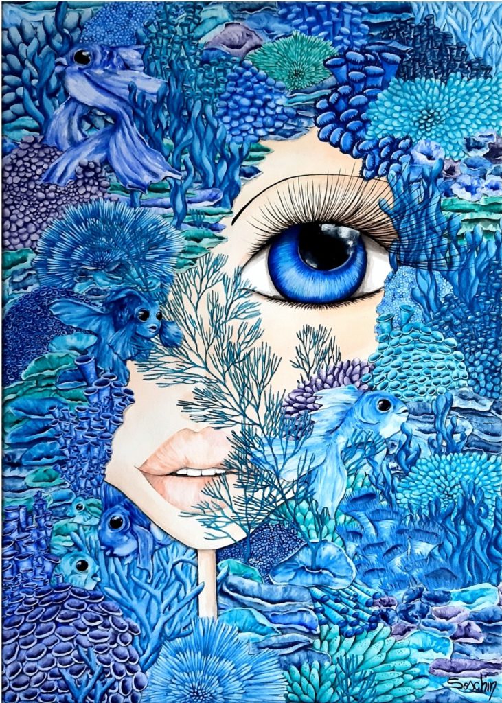 Soschin en su colorido recorrido artístico ha transitado por el diseño textil, murales, ilustraciones y NFTs. Su inspiración es impredecible pero ella hace referencia a textiles orientales y texturas. Una constante: sus formas y miradas con movimiento. Su estilo es tan especial como complejo de explicar. Cuando se trabaja desde la emoción y los colores remplazan las palabras ¿Cómo poner en palabras tanta emoción? Al preguntarle a Soschin por su estilo ella es contundente “No se necesita pintar por la paz mundial, cada uno pintará por lo que quiera , pinto porque me nace. Creo que ni yo tengo claro que es lo que pinto porque de verdad es desde algo muy profundo. Me di cuenta que por mas que me lo exijan no tengo por que poner en palabras que es lo que pinto porque creo que si lo voy poniendo, encasillando en palabras, se va desvirtuando. Lo que pinto es algo que me nace”
